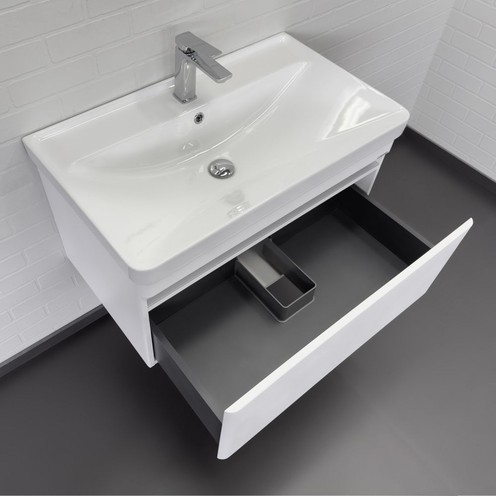 Тумба-умывальник Comforty подвесная Валдай-80П белая матовая с раковиной Comforty 4480 купить