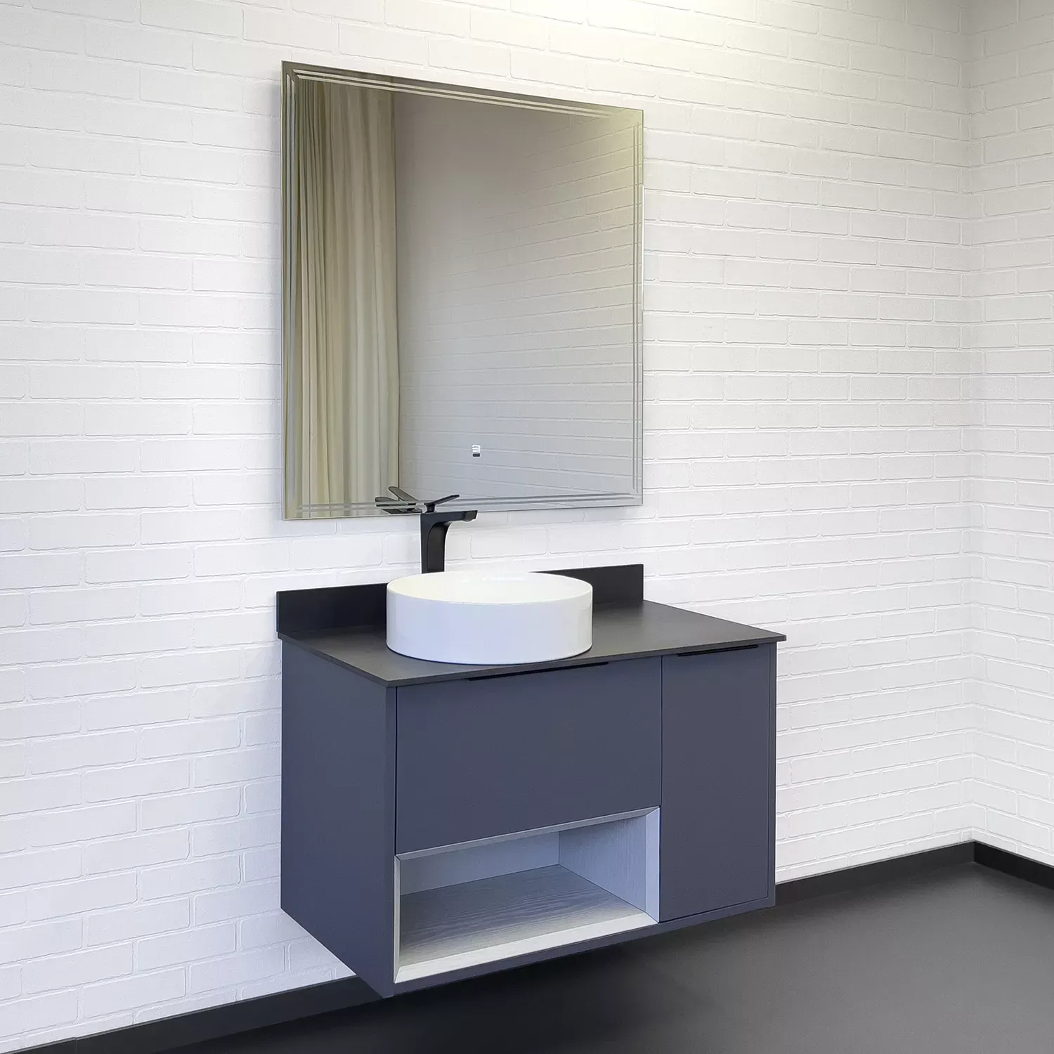 Тумба-умывальник Comforty Джанкой 90 антрацит с черной столешницей и раковиной 9111 купить