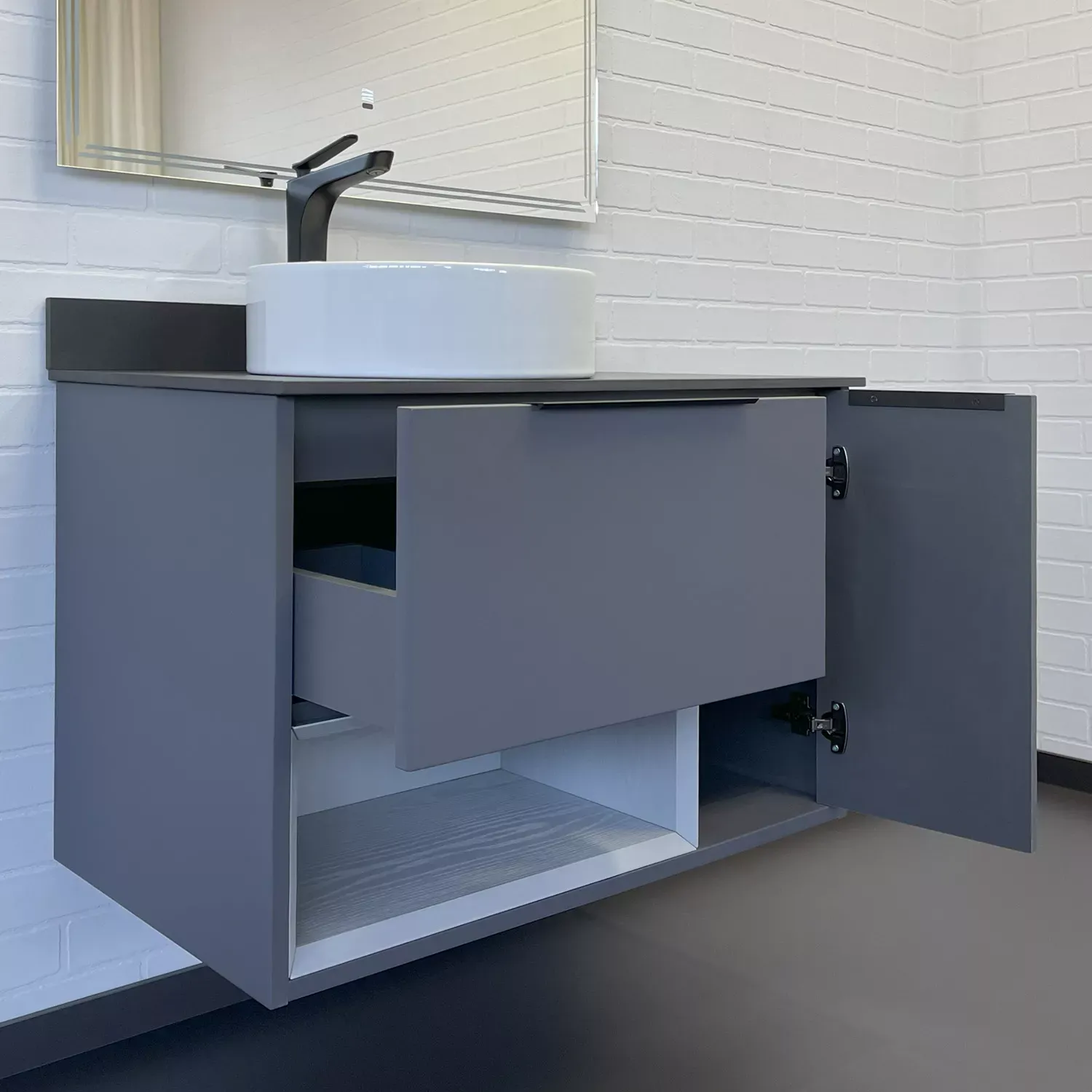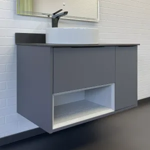 Тумба-умывальник Comforty Джанкой 90 антрацит с черной столешницей и раковиной 9111