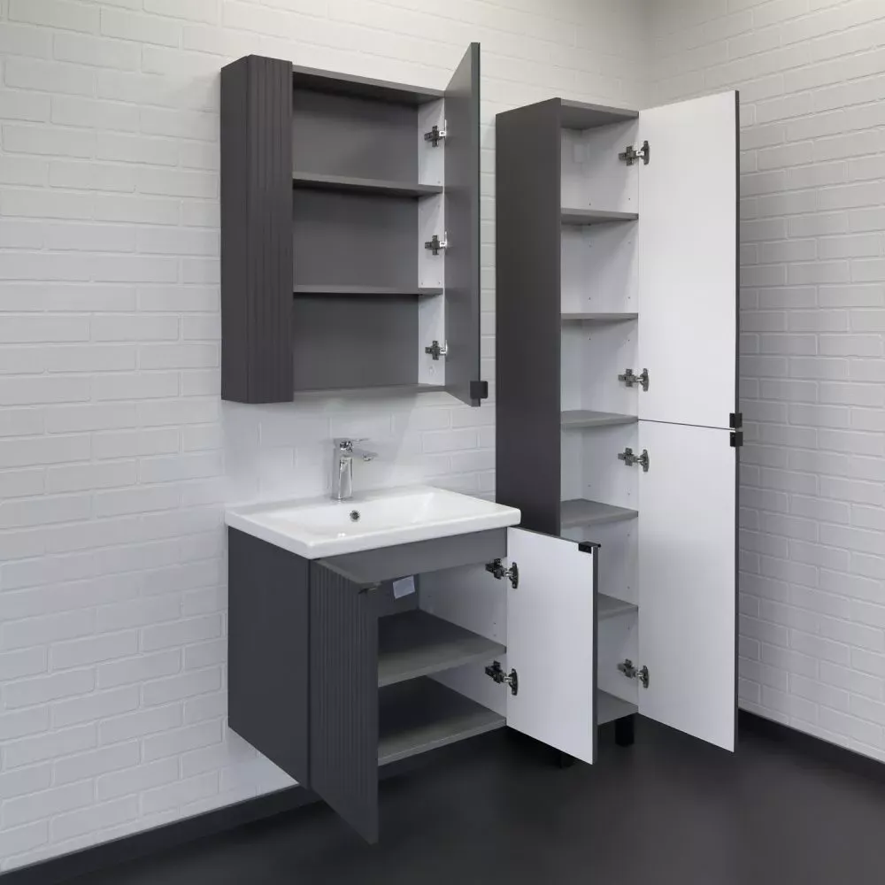 Тумба-умывальник Comforty Лима-60П антрацит с раковиной Como 60