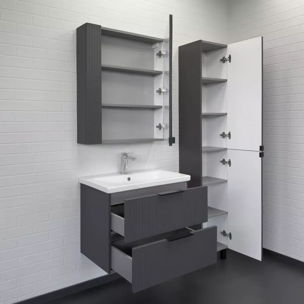 Тумба-умывальник Comforty Лима-70П2 антрацит с раковиной Como 70