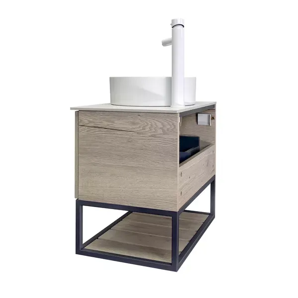 Тумба-умывальник Comforty Прага-60 дуб белый с серой столешницей (Роверелла) с раковиной 9055RA-50