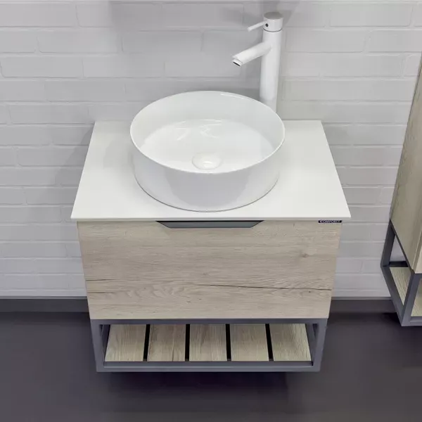 Тумба-умывальник Comforty Прага-60 дуб белый с серой столешницей (Роверелла) с раковиной 9055RA-50 купить