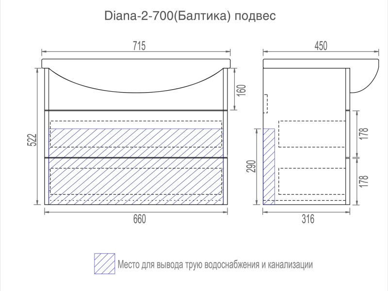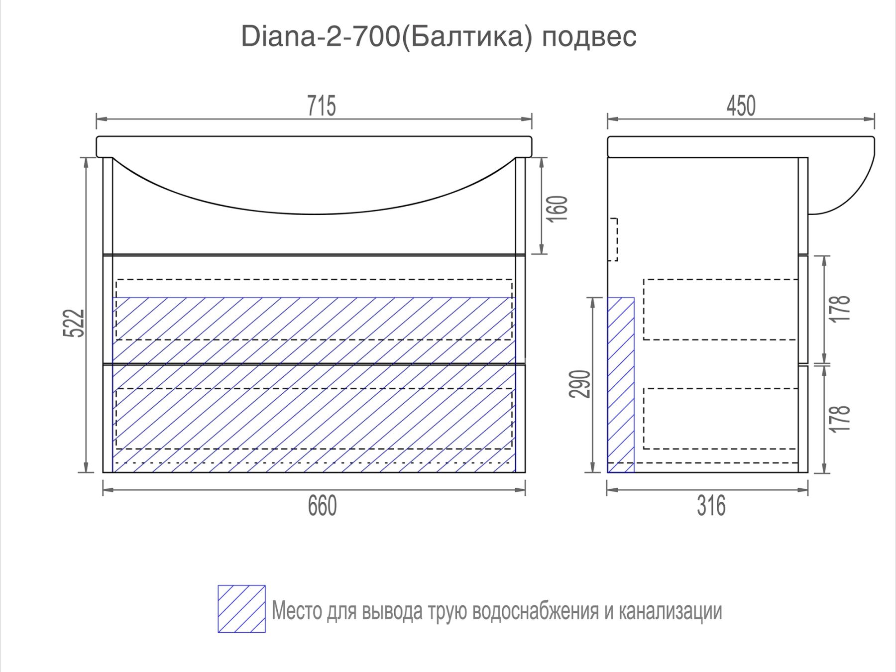 Тумба Vigo Diana-2-700(Балтика) подвесная купить