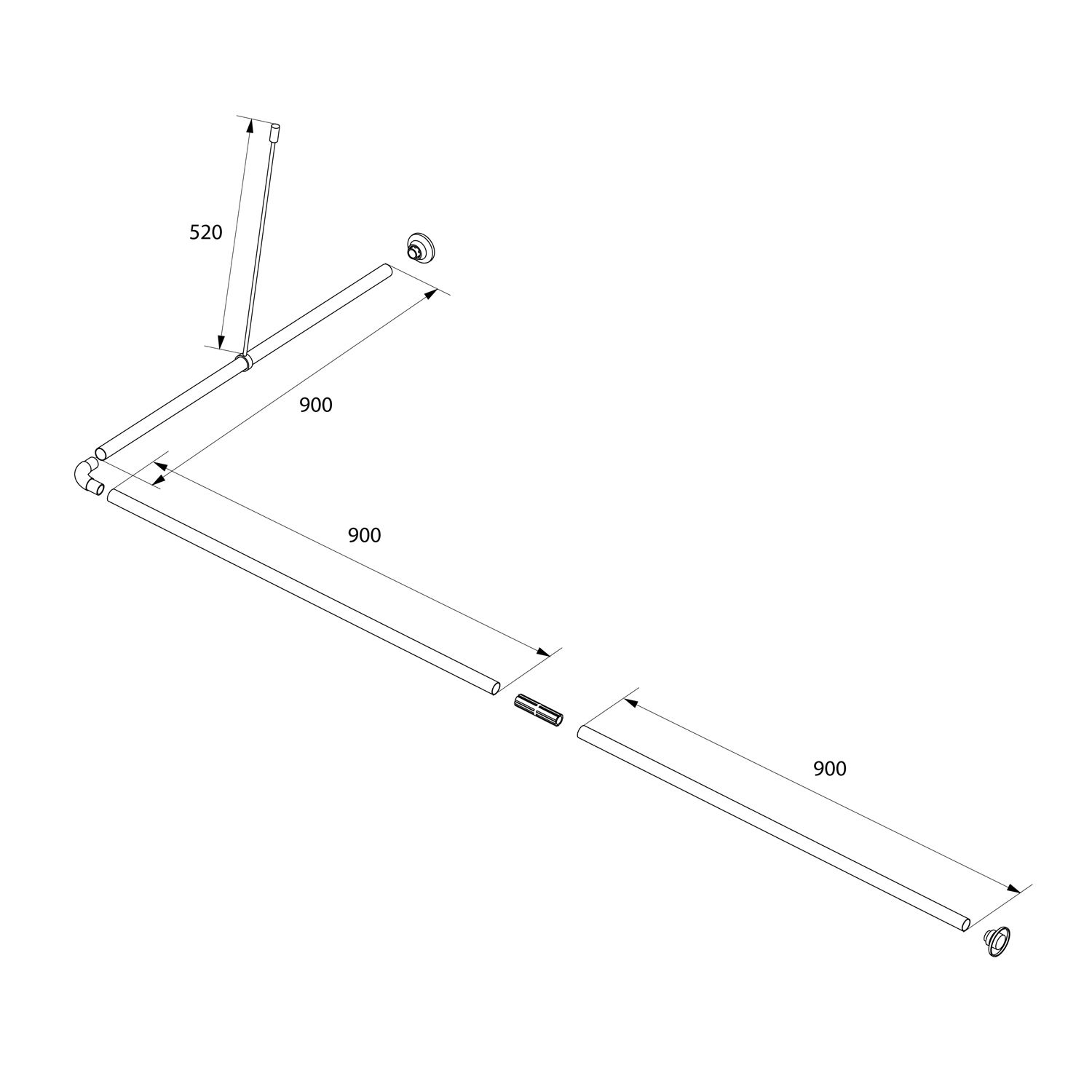 Карниз выполнен из легкого и прочного материала и не провисает, благодаря креплению вертикальной штанги к потолку.