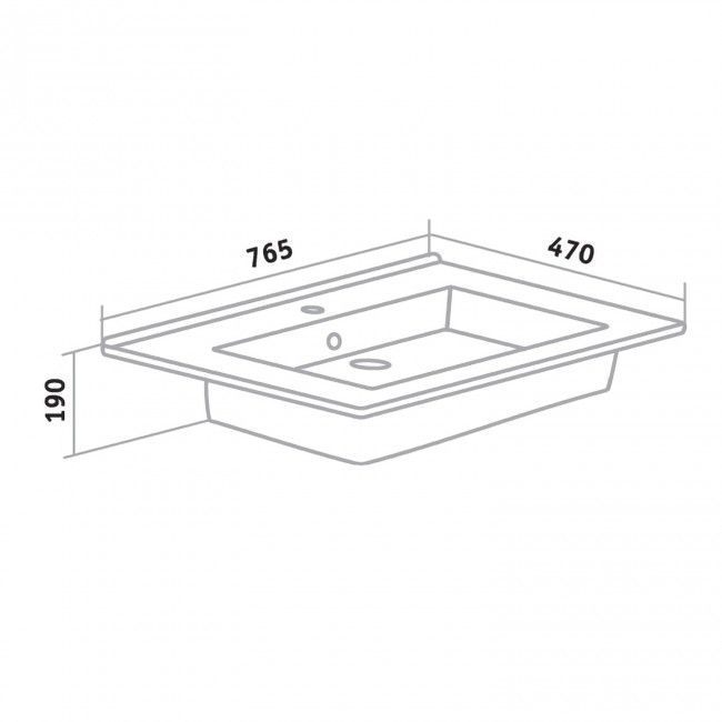 Прямоугольная мебельная раковина "Оскар" устанавливается на мебель, имеет отверстие для смесителя и систему перелива с декоративным кольцом.