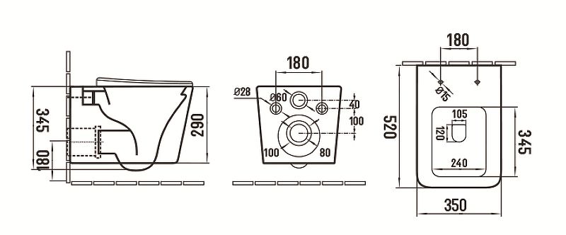 Режим смыва воды:определяется системой инсталляции
