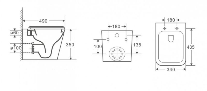 Прилегание унитаза к стене:вплотную