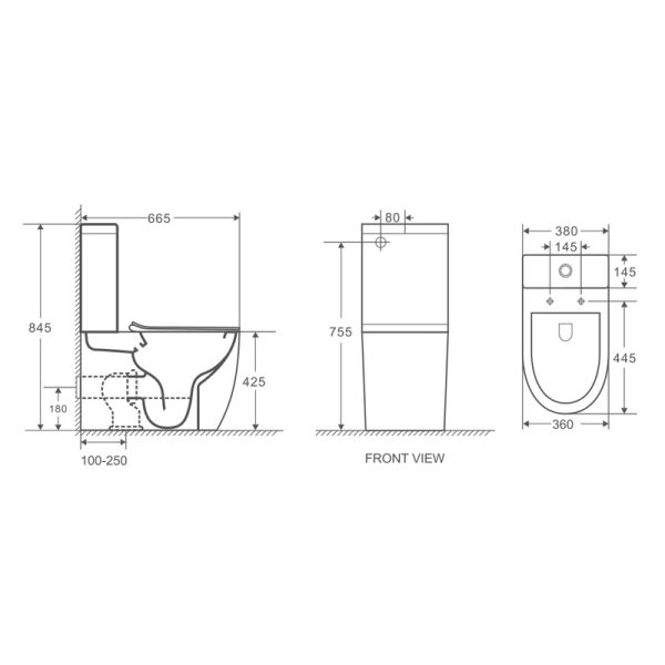 Прилегание унитаза к стене:с отступом
