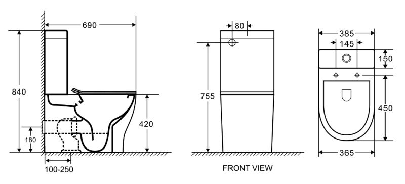 • Прилегание унитаза к стене: