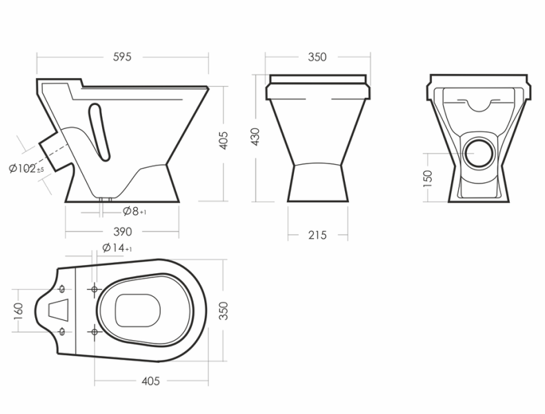 Размеры унитаза-компакта: 350 x 650 x 810