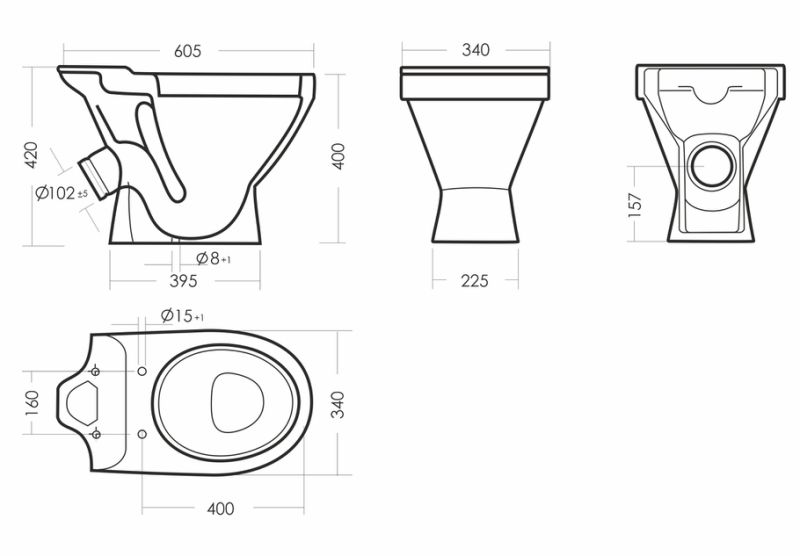 Размеры унитаза-компакта: 340 x 625 x 780