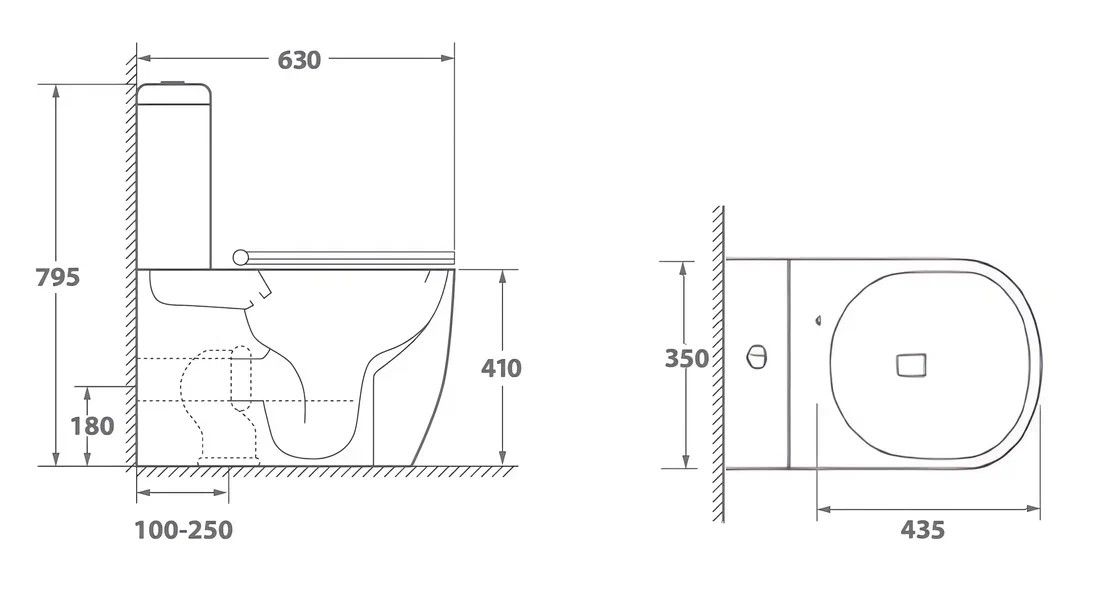 Прилегание унитаза к стене:вплотную