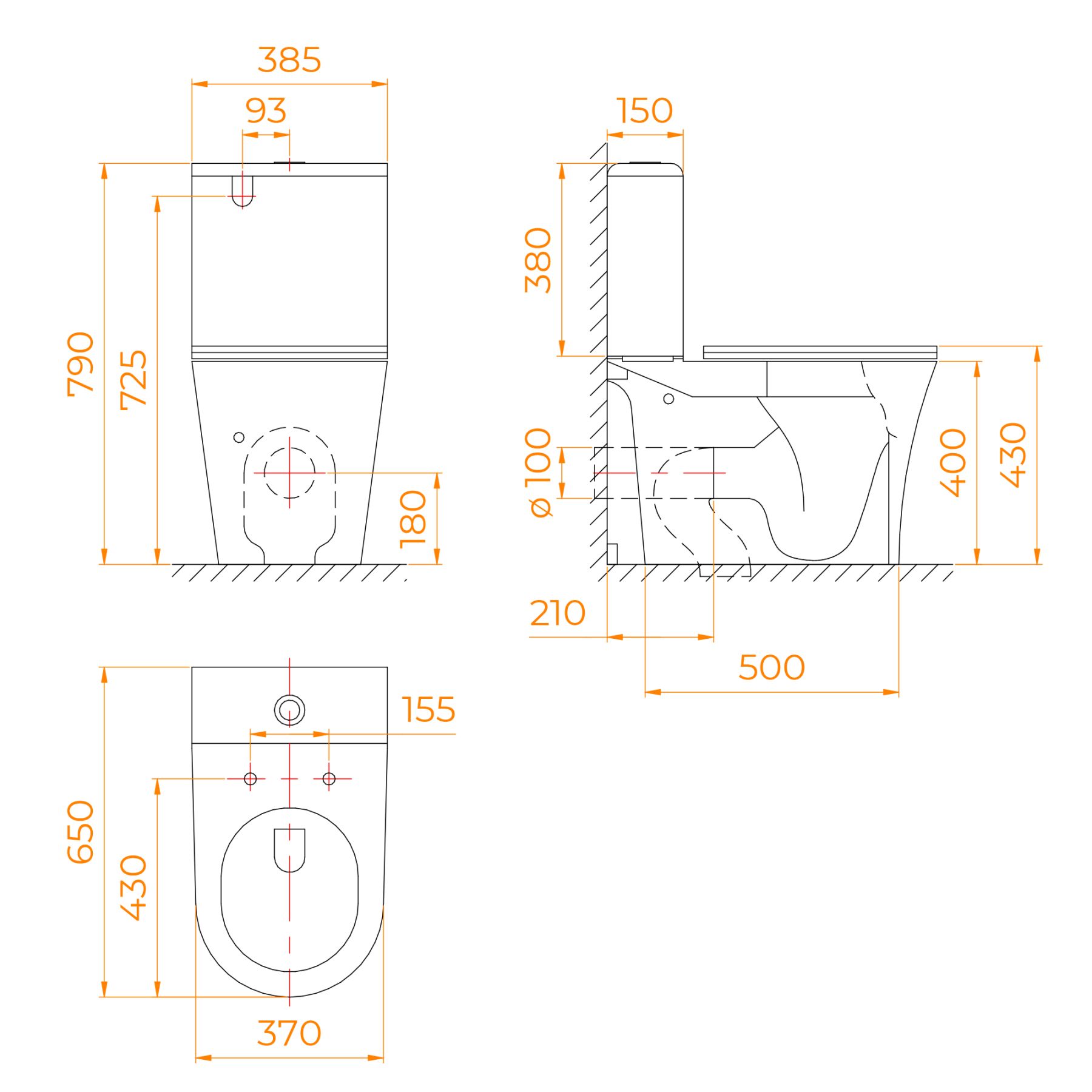 Корпус унитаза обработан алмазной глазурью - инновационная антибактериальная эмаль наносится непосредственно на керамику во время обжига. Такая технология обеспечивает долговечный блеск, приятную на ощупь поверхность, высокую защиту от царапин, истирания и воздействия внешних факторов. Идеально гладкая поверхность позволяет исключить образование известкового налёта и загрязнений, а также обеспечивает длительную и абсолютную защиту от микробов и бактерий. Исключительная простота очистки также позволяет снизить расход воды.Модель унитаза оснащена комплектом высококачественной сливной арматуры, которая уже вмонтирована в бачок с нижним подводом воды. Комплект сливной арматуры состоит из впускного механизма с нижней подачей воды, диаметром на 1/2", сливного механизма к двойной хромированной кнопкой, фиксирующих болтов, а также уплотнительный прокладки, которая ставится между бачком и чашей унитаза. Бесшумный и быстрый набор воды, надежный двухрежимный слив 3/6 лит. Выполнена из высокопрочного пластика АBS, которые устойчивы к растрескиванию под воздействием влаги и химических средств. Качество исполнения и качество пластика, на порядок выше, чем у существующих аналогов. Эксплуатационный ресурс комплекта составляет 250 000 циклов, что гарантирует его надежность и долговечность.Безободковая конструкция чаши и слив RIMLESS: