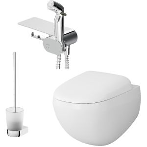 Унитаз подвесной AM.PM Sensation FlashClean FlashClean CK30H0904W белыйКомпактное и стильное дизайнерское решение для вашей туалетной комнаты от AM.PM. Полностью готовый к установке комплект: подвесной унитаз FlashClean, сиденье для унитаза микролифт, гигиенический набор с полкой, стойка с туалетной щеткой. Дизайн униказа отмечен премиями iF Design и Good Design. FlashClean — новое поколение безободковых унитазов без использования пластика: 100% гигиеничности, 0% брызг. Полностью скрытые крепления, скрытый фановый выход обеспечат эстетическую чистоту дизайна и лёгкость в уходе за керамикой. Комплект дополнен быстросъемным сиденьем из дюропласта. Механизмы плавного опускания и быстрого снятия - комфорт в использовании и легкость в уходе за сиденьем и керамикой. Идеальное сочетания дизайна сиденья и керамики. Многофункциональный гигиенический набор представляет собой удобную полочку, на которой можно разместить все, что необходимо вам под рукой. На интегрированном держателе можно размещать туалетную бумагу, а на крючке - полотенце. Завершает комплект подвесная стойка с туалетной щеткой. Наиболее эстетически совершенные радиусы характерной формы Sensation повторяют линии других продуктов коллекции, идеально завершая образ ванной комнаты.