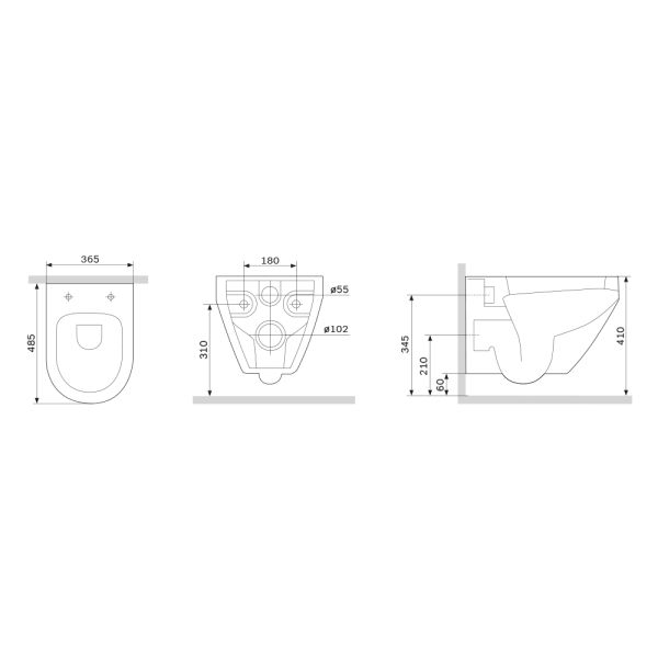 Прилегание унитаза к стене:вплотную