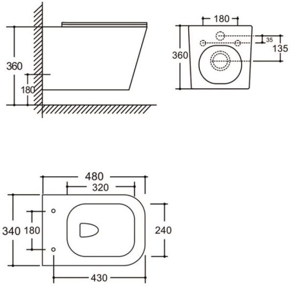 • Прилегание унитаза к стене:
