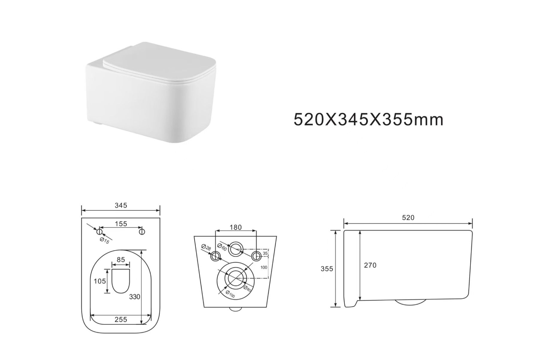 • Эстетичный дизайн: Современные линии и компактные размеры делают этот унитаз стильным элементом вашего интерьера. Подвесная конструкция создает эффект легкости и визуально увеличивает пространство в ванной комнате.
