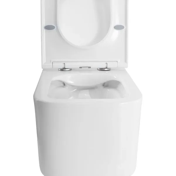 Оснащение: чаша унитаза безободковая, сиденье с микролифтом из дюропласта, быстросъёмное с металлическим креплением