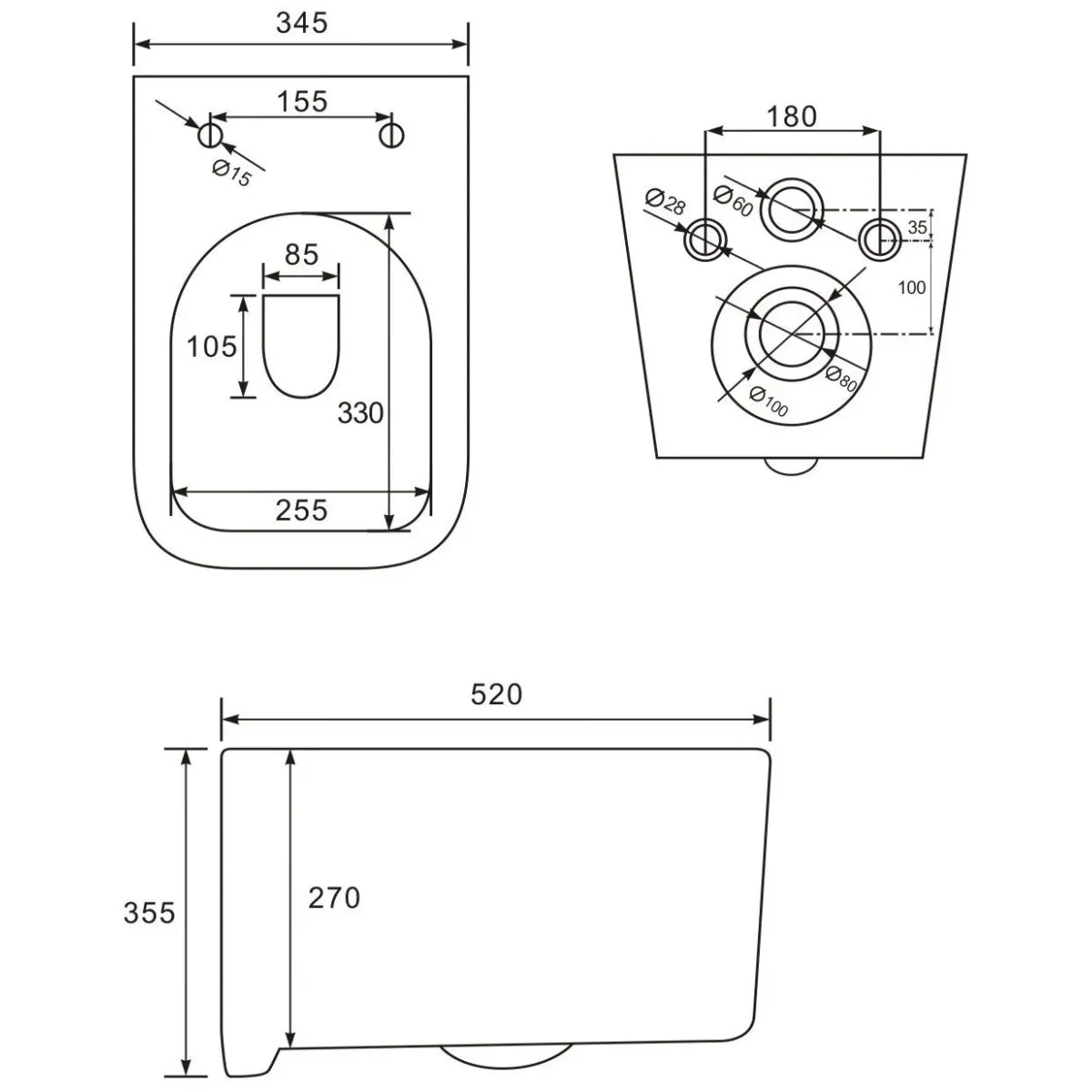 Укороченный унитаз:нет