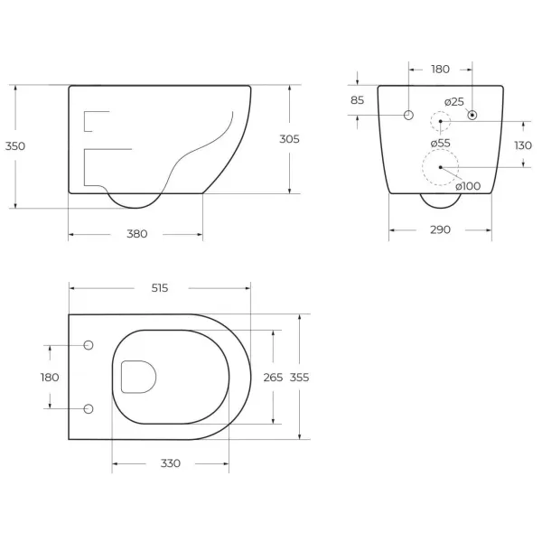 Оснащение: чаша унитаза безободковая, сиденье с микролифтом из дюропласта, быстросъёмное с металлическим креплением