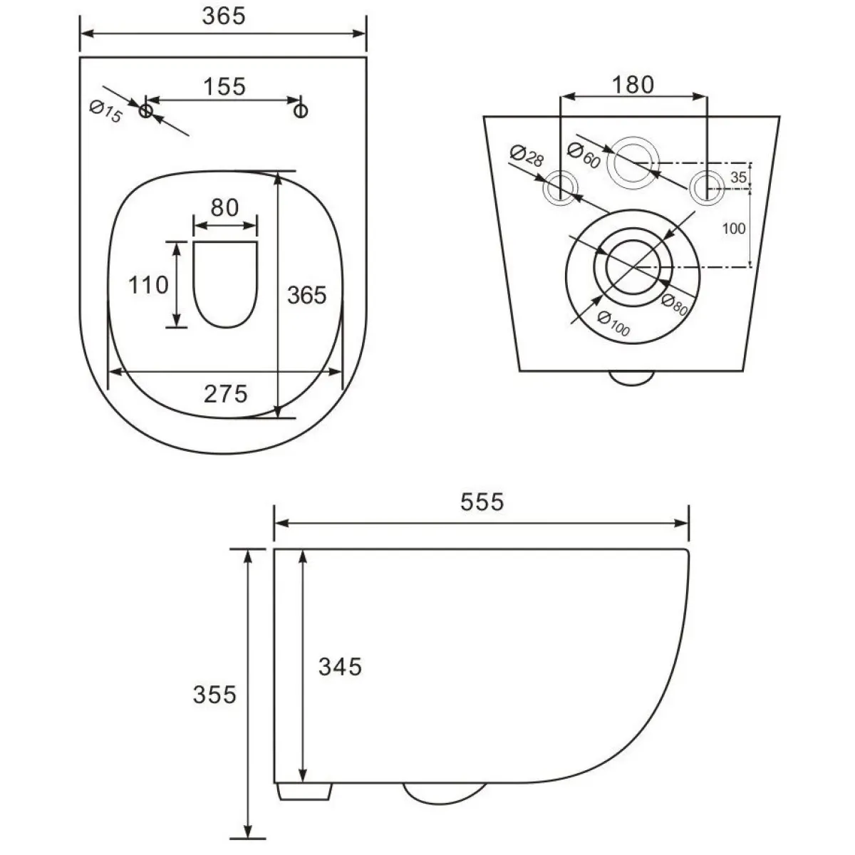 Оснащение: чаша унитаза безободковая, сиденье с микролифтом из дюропласта, быстросъёмное с металлическим креплением