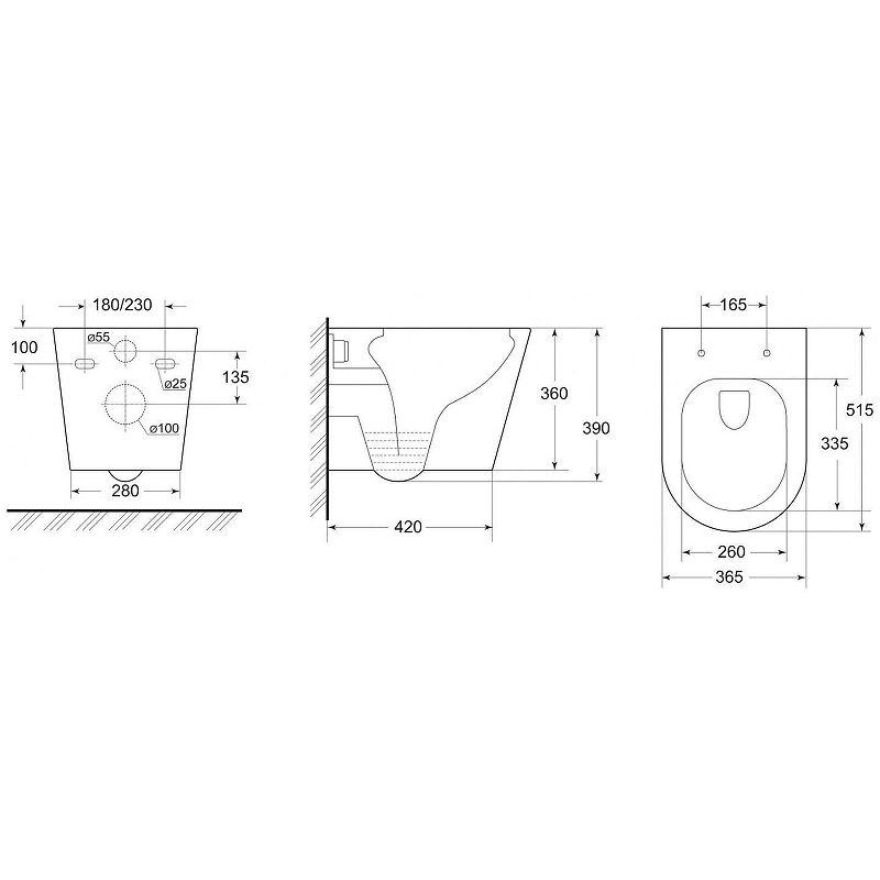 Оснащение: чаша унитаза безободковая, сиденье с микролифтом из дюропласта, быстросъёмное с металлическим креплением