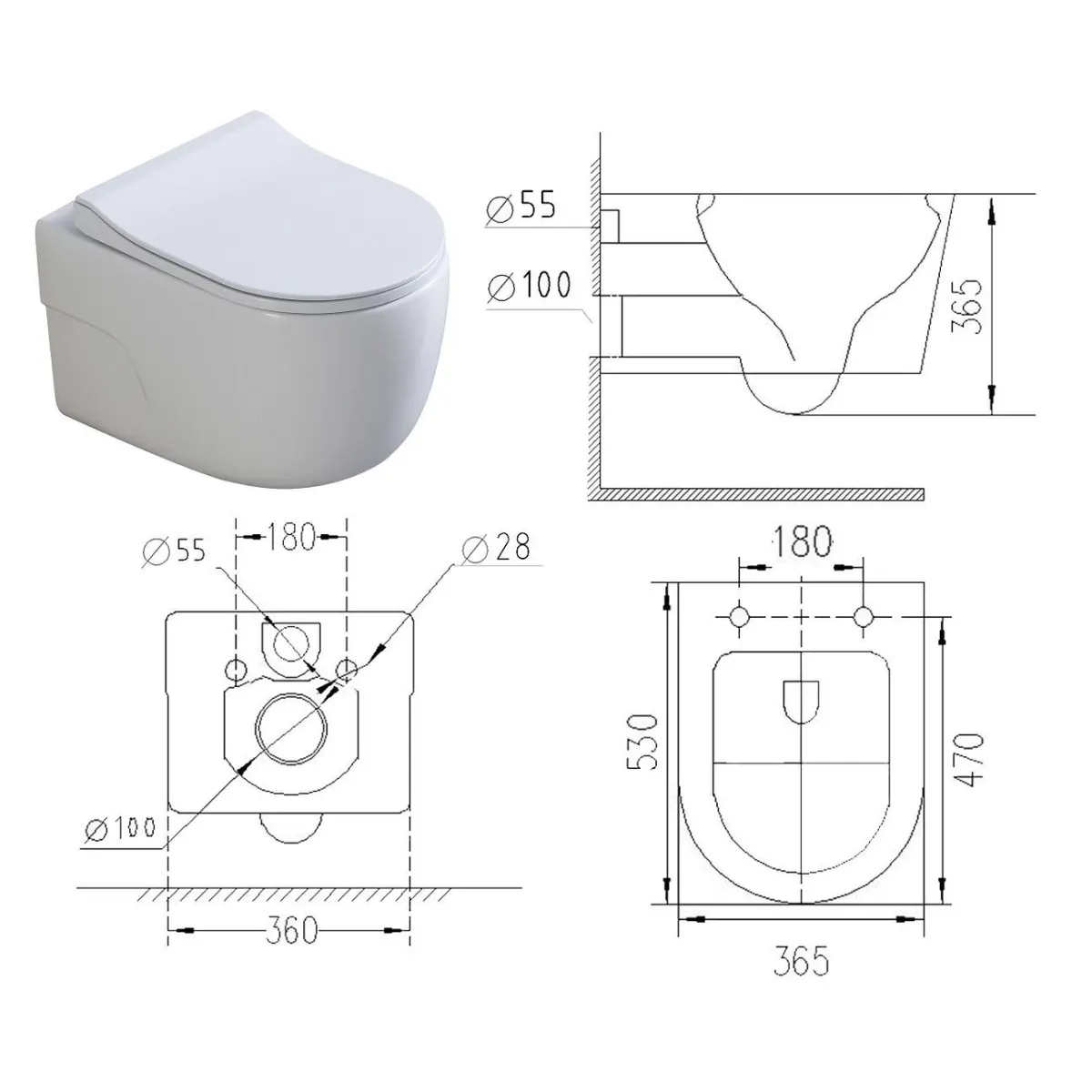 Оснащение: чаша унитаза безободковая, сиденье с микролифтом из дюропласта, быстросъёмное с металлическим креплением