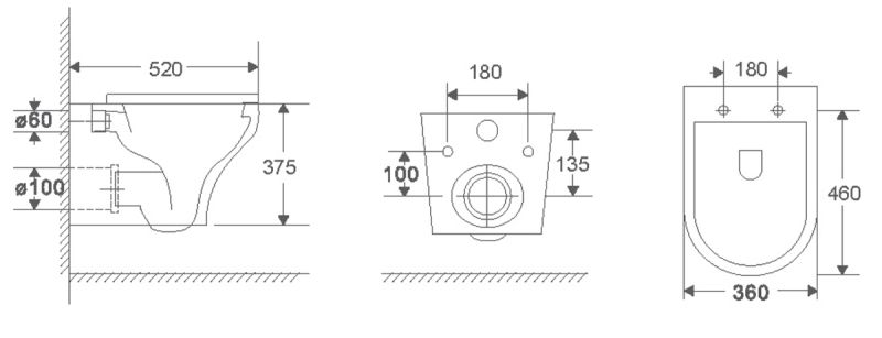 Прилегание унитаза к стене:вплотную