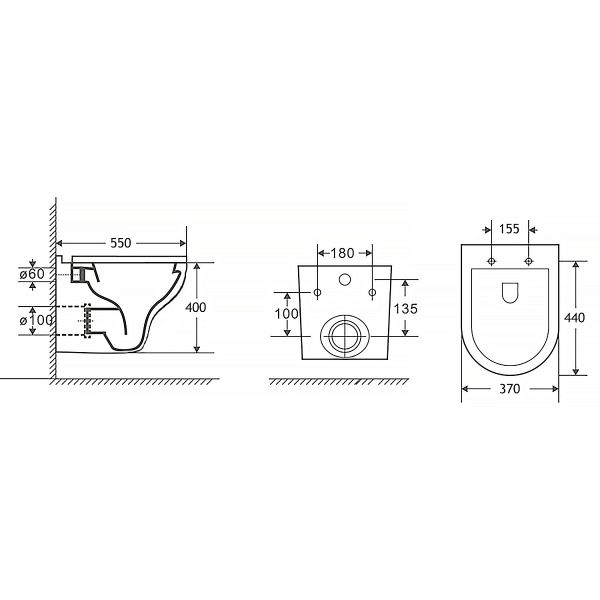 • Прилегание унитаза к стене: