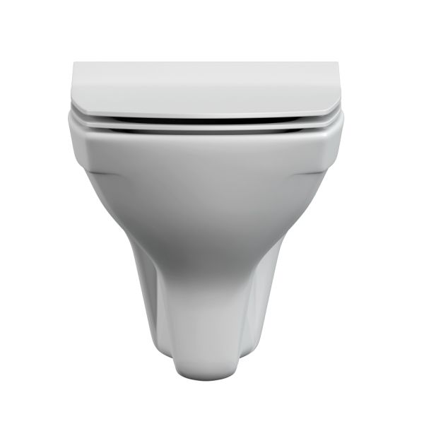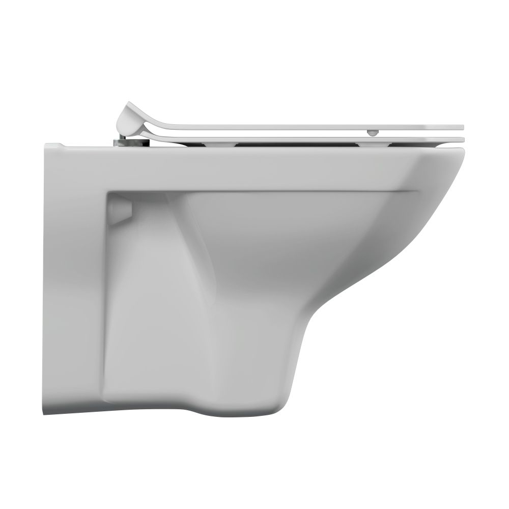 Подвесной унитаз с ультратонким, антибактериальным сиденьем с плавным закрыванием и легкосъемным механизмом.