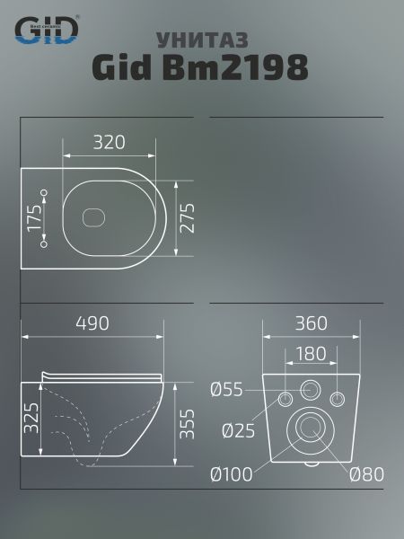 Convexo — коллекция округлых унитазов и биде, идеально подходящих для современных интерьеров. Испанское качество и соответствие европейским нормам — основные черты серии. Подвесной безободковый унитаз GiD Bm2198 - модель с горизонтальным выпуском выполнена из мелкопористой керамики в черном матовом цвете. Оснащена быстросъёмным сиденьем из дюропласта с функцией микролифта, обеспечивающей плавное и бесшумное опускание крышки. Благодаря антигрязевому покрытию и воронкообразной овальной чаше унитаз обеспечивает высокий уровень гигиены и легкость ухода. Комплект: подвесной унитаз GiD Bm2198 с креплениями для скрытого монтажа; сиденье с креплениями.