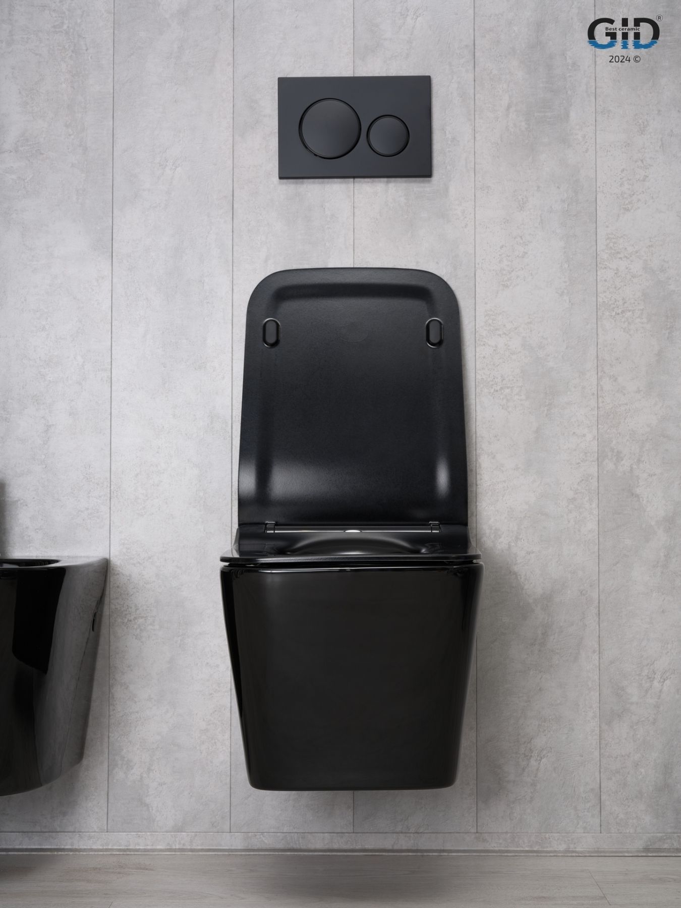 Серия Cuadrado — образец современного дизайна и испанского качества. Соответствие европейским стандартам гарантирует их долговечность. Подвесной безободковый унитаз GiD Tr2144BL - это модель с горизонтальным выпуском, выполненная из мелкопористой керамики в черном глянцевом цвете. Оснащена быстросъёмным сиденьем из дюропласта с функцией микролифта, обеспечивающей плавное и бесшумное опускание крышки. Благодаря антигрязевому покрытию и воронкообразной квадратной чаше унитаз обеспечивает высокий уровень гигиены и легкость ухода. Комплект: подвесной унитаз GiD Tr2144BL с креплениями для скрытого монтажа; сиденье с креплениями.