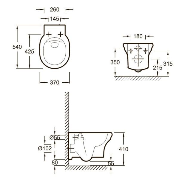 • Прилегание унитаза к стене: