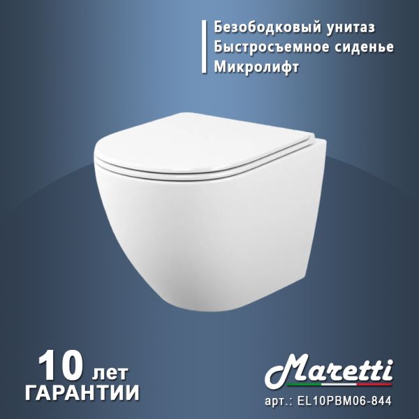 Унитаз подвесной Maretti Elena безободковый с микролифтом, EA10PBM06-844, белый купить