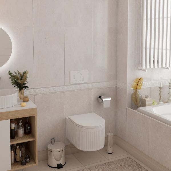 Представляем вашему вниманию подвесной унитаз Maretti Renata RE10PBM33-844 в элегантном белом цвете. Он изготовлен из качественного санфарфора и отличается отсутствием ободка, что упрощает его гигиеническую очистку и позволяет избежать скопление загрязнений.Вихревая система смыва обеспечивает эффективное устранение загрязнений, а антивсплесковая система предотвращает появление неприятных брызг. Антигрязевое покрытие на поверхности унитаза помогает сохранить первозданный вид и упрощает уход за изделием.Данный унитаз комплектуется быстросъемным сиденьем с функцией микролифта, обеспечивающей плавное опускание сиденья без ударов. Межосевое расстояние для крепежных шпилек инсталляции составляет 18 сантиметров, что соответствует стандартам большинства инсталляций.Гарантия на этот товар составляет 10 лет, подтверждая его высокое качество и долговечность. Подвесной унитаз Maretti Renata станет отличным выбором для тех, кто ценит стиль, комфорт и гигиену.