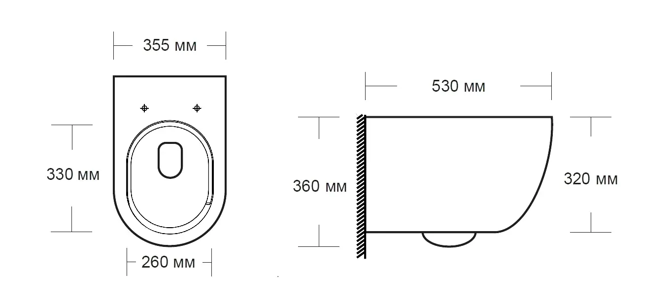Безободковый: чаша без труднодоступных мест для уборки, полностью омывается водой