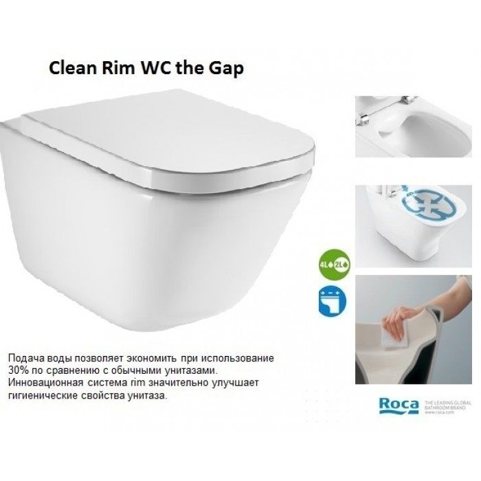 Унитаз подвесной Roca Gap Clean Rim A34H470000 с сиденьем Soft Close купить