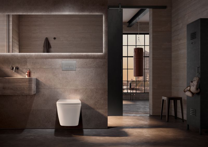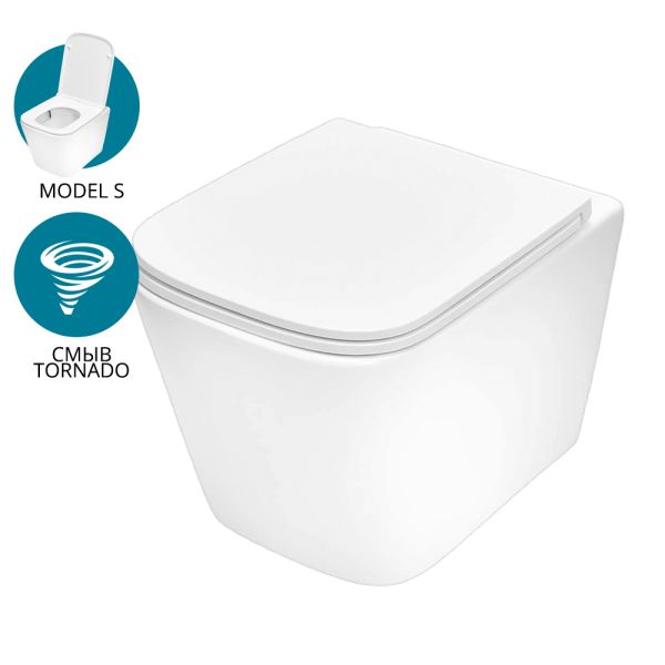 Строгая геометричная форма, тяготеющая к прямым углам, хорошо сочетается с другими прямоугольными элементами интерьера: панелями смыва, плиткои, окнами или дверью. Благодаря безободковои конструкции в чаше нет труднодоступных мест. Это облегчает уход и позволяет отказаться от агрессивнои бытовои химии. А для того чтобы вода не разбрызгивалась во время смыва, унитаз оснащен технологиеи Tornado flush, которая направляет воду по заданнои траектории в виде спирали.