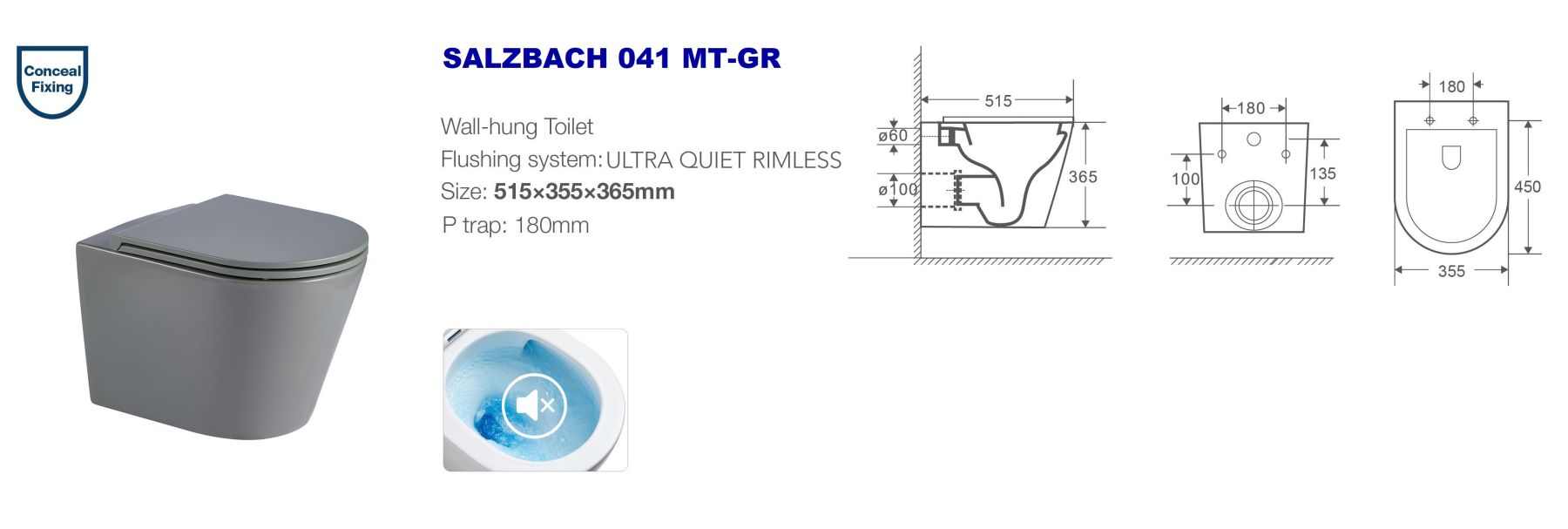 Унитаз подвесной Weltwasser WW SALZBACH 041 MT-GR 10000008259 серыйУНИТАЗ ПОДВЕСНОЙ БЕЗОБОДКОВЫЙ RIMLESS* УЛЬТРА ТИХИЙ СЛИВ ВОДЫ* Технология слива TORNADO* Антивсплеск* Горизонтальный выпуск* Скрытые крепления* Сиденье: тонкое, быстросъёмное, дюропласт с микролифтом.* Антибактериальное покрытие (технология PureGuard) препятствует размножению бактерий* Особая глазурь для легкой очистки отталкивает известковые отложения и загрязнения* Цвет: серый матовый.
