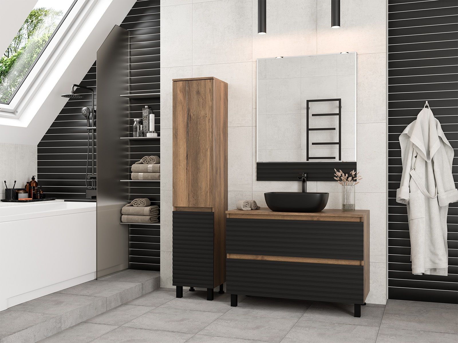 Шкаф-пенал для ванной комнаты – это стильное решение, которое гармонично вписывается в современный интерьер. Его элегантные линии и аккуратные формы создают атмосферу чистоты и порядка, что особенно важно в таком интимном пространстве. Изготовленный из качественных влагостойких материалов, этот шкаф обеспечивает долговечность и надежность, даже в условиях повышенной влажности.Основное преимущество шкаф-пенала заключается в его вместительности. Удобные полки и ящики позволяют организовать пространство и разместить все необходимое: от косметики до бытовых принадлежностей. Каждая деталь продумана для удобства использования, что делает утренние и вечерние ритуалы более приятными.Будь то строгий минимализм или уютный скандинавский стиль, шкаф-пенал станет акцентом, который подчеркивает индивидуальность вашего пространства. Не упустите возможность преобразить свою ванную комнату, добавив в нее этот элегантный и практичный элемент.