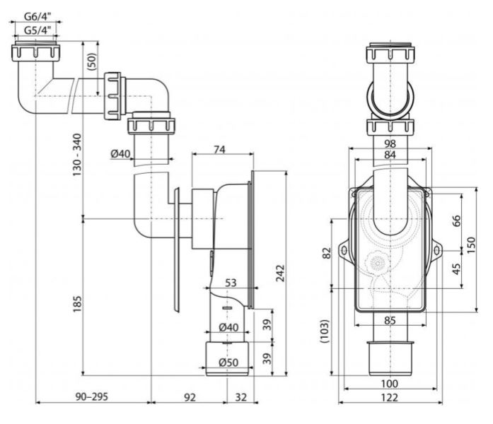 Универсальный сифон под штукатурку AlcaPlast экономящий пространство A873