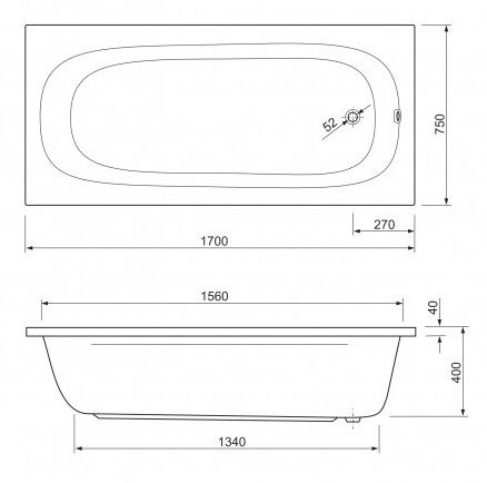 Ванна акриловая Cezares PIAVE-170-75-42-W37
