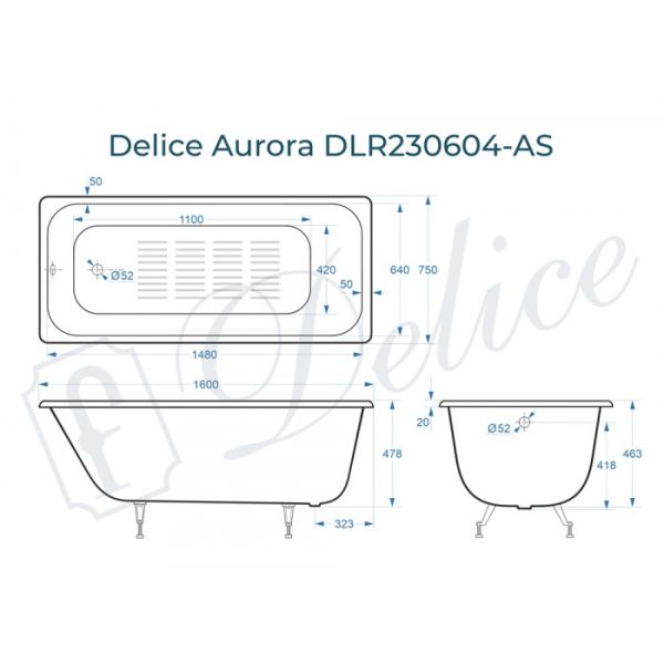 Ванна чугунная Delice Aurora DLR230604-AS 160x75 с антискользящим покрытием