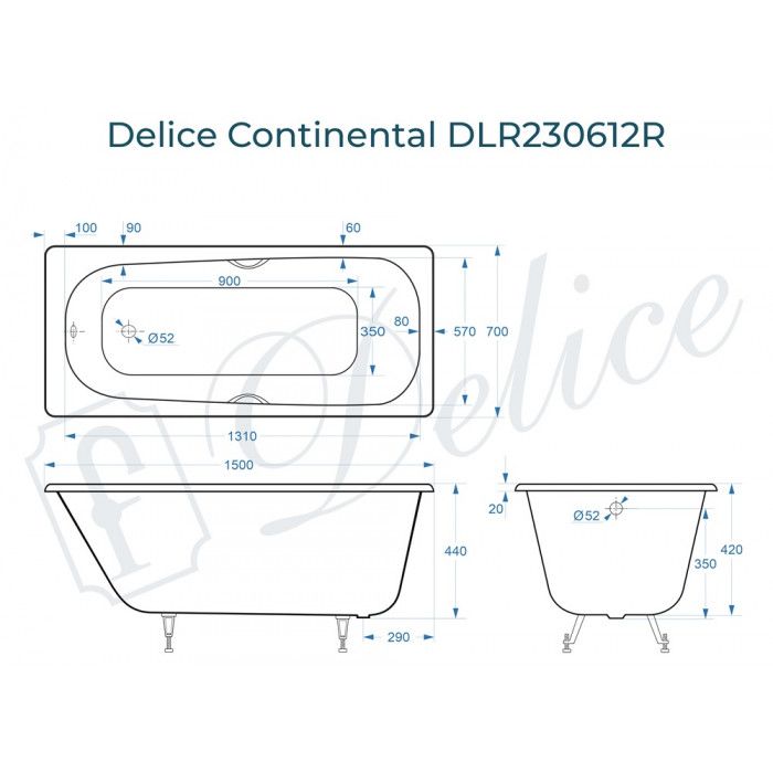 Ванна чугунная Delice Continental DLR230612R 150x70 с отверстиями под ручки купить