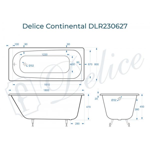 Delice Continental 180х80 - это уютная стильная модель чугунной ванны для вашего дома. Дизайн ванны спроектирован на основе классической формы с учетом современных тенденций в сантехнике. Внутреннее пространство чаши имеет увеличенный объем, анатомическую форму и широкое дно для максимального комфорта при эксплуатации. Continental 180х80  - это отличное решение для больших ванных комнат.