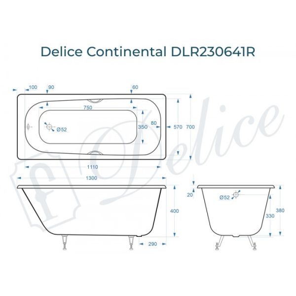 Ванна чугунная Delice Continental DLR230641 130х70 купить