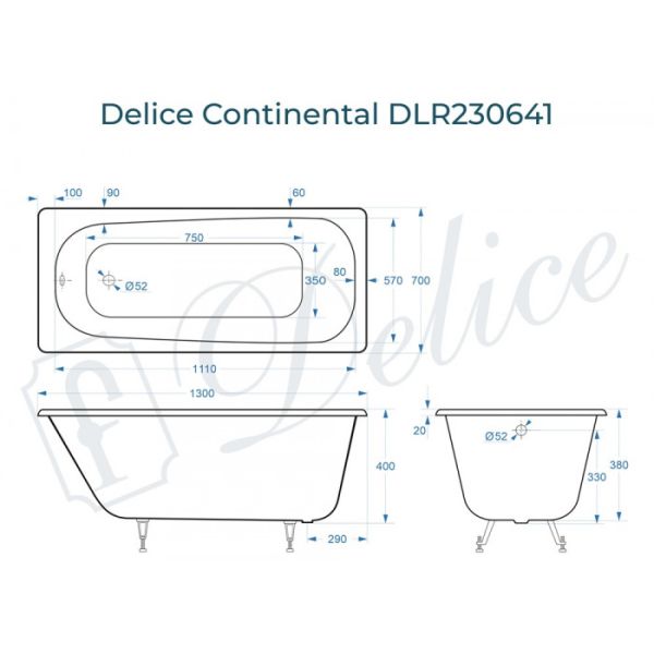 Delice Continental 130х70 - это уютная стильная модель чугунной ванны в мини-размере для вашего дома. Дизайн ванны спроектирован на основе классической формы с учетом современных тенденций в сантехнике. Внутреннее пространство чаши имеет увеличенный объем, анатомическую форму и широкое дно для максимального комфорта при эксплуатации. Continental 130х70  - это отличное решение для небольших ванных комнат.