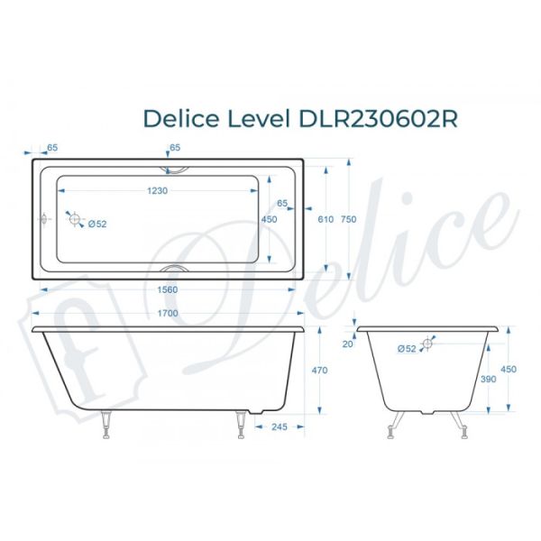 Ванна чугунная Delice Level DLR230602R 170х75 с отверстиями под ручки купить