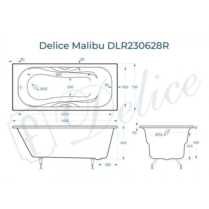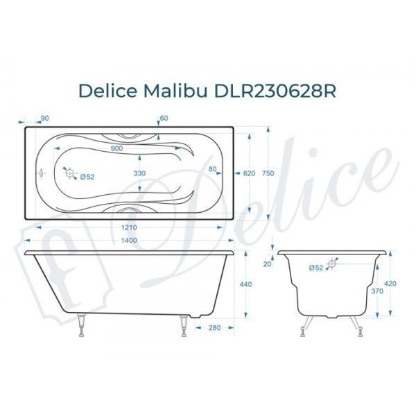 Ванна чугунная Delice Malibu DLR230628R 140х75 с отверстиями под ручки купить